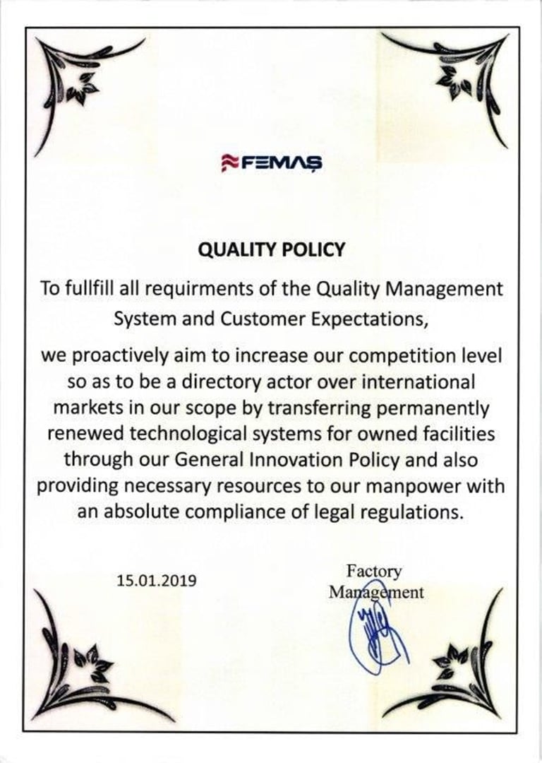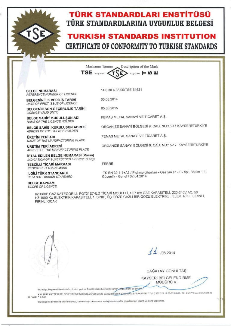 Fiorenta has established itself as a global benchmark for quality, safety, and environmental responsibility, proudly holding a wide array of internationally recognized certifications. Among its prestigious accolades are ISO 9001, which underscores its commitment to consistently delivering high-quality products and services; ISO 14001, reflecting its dedication to environmental management and sustainability; and ISO 50001, highlighting its focus on energy efficiency and responsible resource utilization. Additionally, Fiorenta has obtained IEC certifications, Certigaz approvals, TSE compliance, and many other esteemed certifications across various sectors. These achievements not only demonstrate Fiorenta’s adherence to the highest international standards but also reinforce its commitment to innovation, reliability, and excellence. By continuously maintaining and expanding its portfolio of certifications, Fiorenta ensures that customers around the world can trust in the safety, performance, and sustainability of every product it offers.
